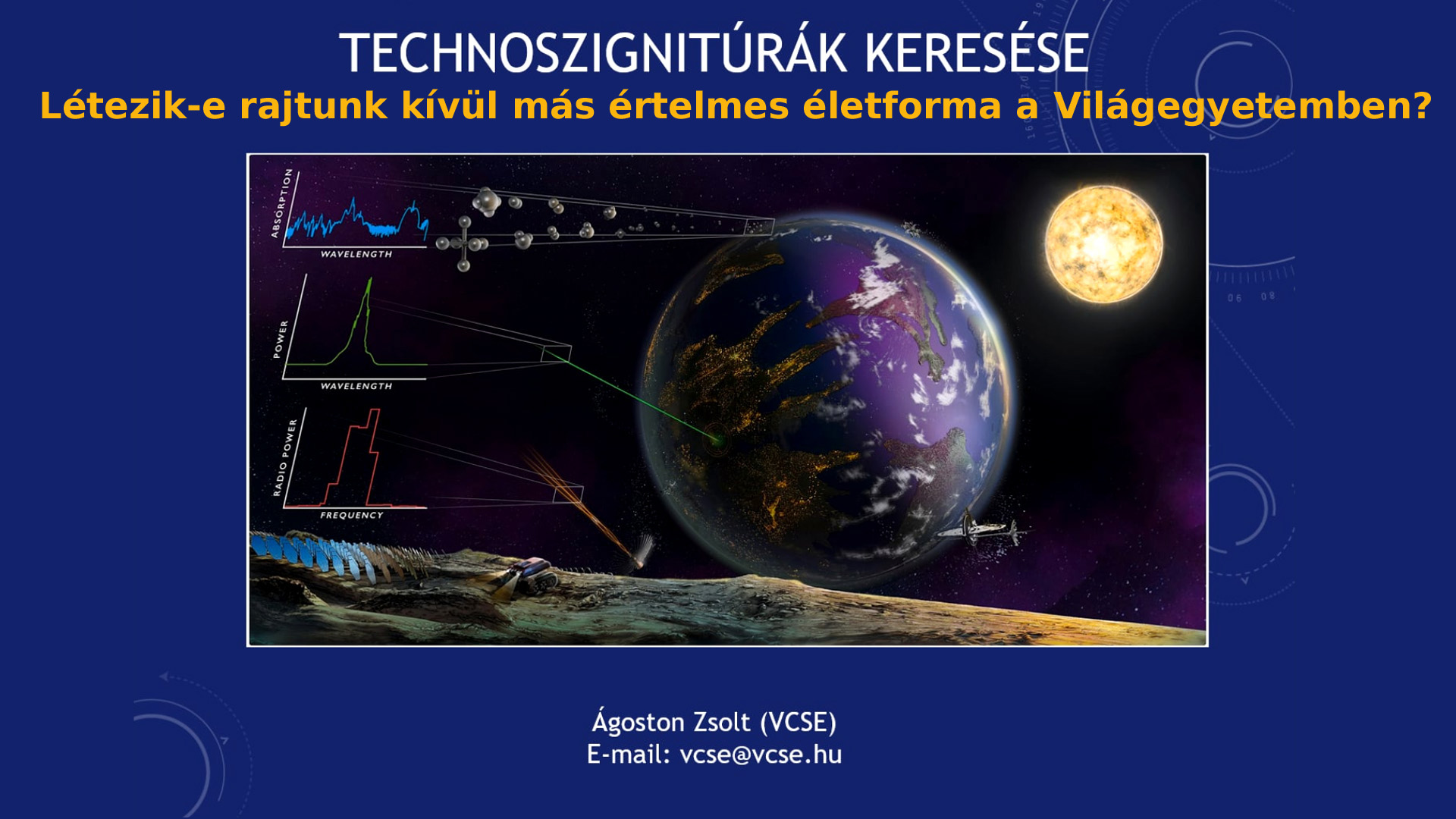 Az emberiséget mindig is érdekelte a kérdés, hogy létezik-e rajtunk kívül más értelmes életforma a világegyetemben? A XX. század közepétől, az űrkorszak kezdetétől fogva már kutathatóak az olyan mérhető jelzések, melyek tudományos bizonyítékul szolgálhatnak földönkívüli technológiai civilizációk létére. Az előadásban áttekintjük a technoszignitúrák keresési programjait, azok történetét és módszereit.